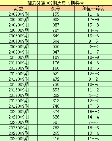 福彩3D上期奖号为252,去年同期与今年同期前20期奖号对比。