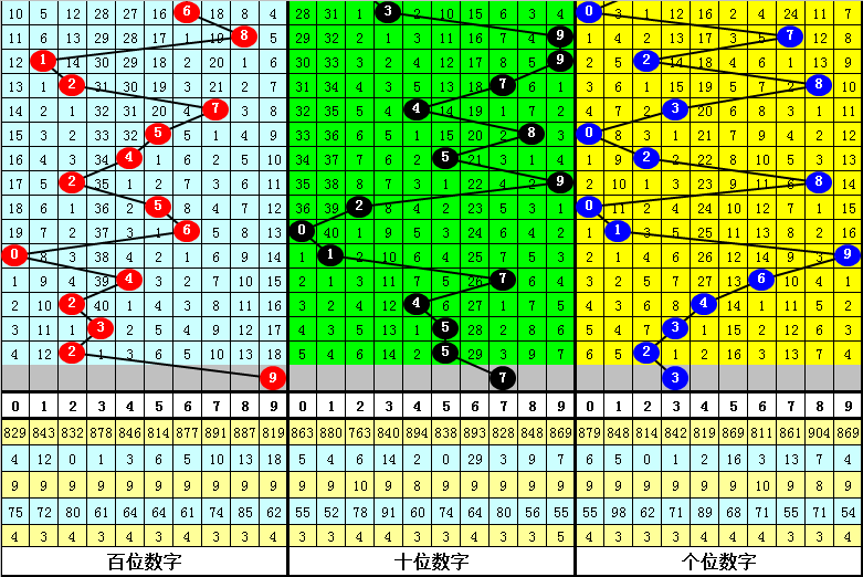 从以上统计可以看出,在组选分布图中,号码0开出8次,1开出3次,2开出3次,3开出5次,4开出5次,5开出3次,6开出5次,7开出6次,8开出7次,9开出3次,号码奇偶比为20:28,奇号走势较冷,本期看好奇号回补,奇偶比为3:0;号码大小比为:24:24,大小 号码基本相当,本期看好大号转热,大小比参考2:1。