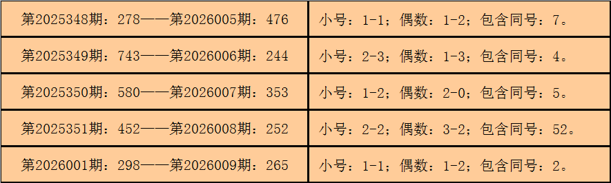 福彩3D第2026005期-第2026009期连续5期开出号码分别为:476-244-353-252-265。