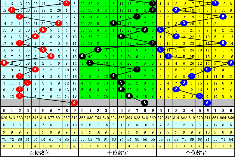 跨度、和值分析:近期跨度主要分布在2-9区域,比较分散,本期看好跨度下降,参考跨度3。和值近期波动范围较大,上期开出和值13,本期看好和值上升,参考和值23。