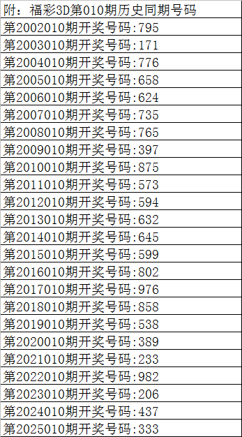 曾哥福彩3D第2026010期推荐: