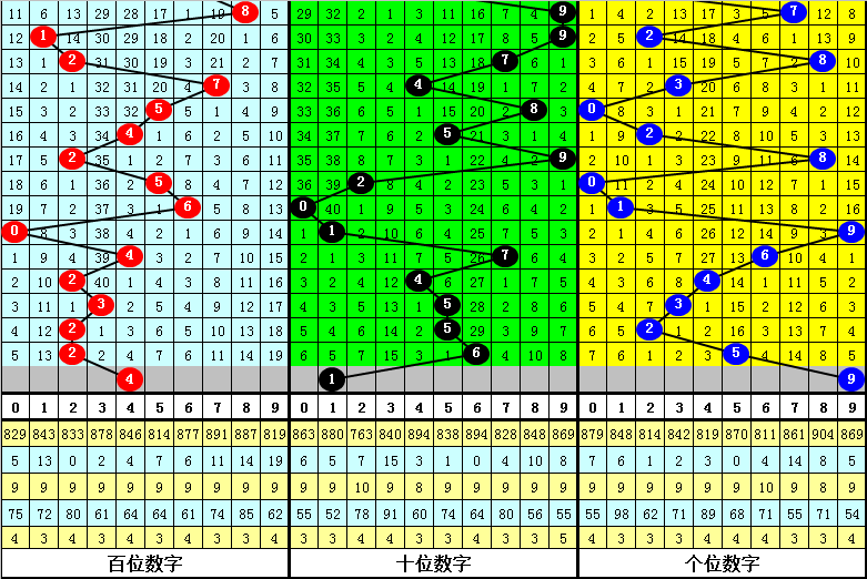 4、号码0-9出现开出频次分别为:号码1出现25次,号码4出现24次,号码0出现19次,号码9出现18次,号码8出现17次,号码2出现16次,号码3出现15次,号码6、7出现13次,号码5出现11次。一般来说,表现最冷的三码:5、6、7不会同时出现,本期杀一码:6;表现最热的四码:0、1、4、9中一般会出现奖号,本期注意号码;4。