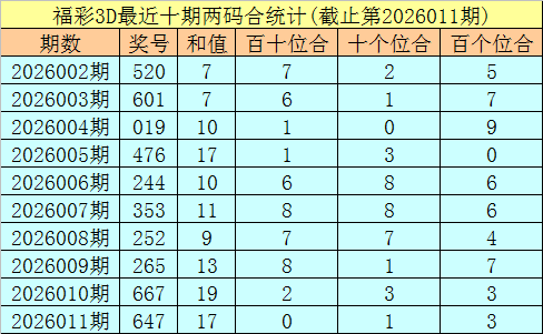 福彩3D第2026012期两位合分析: