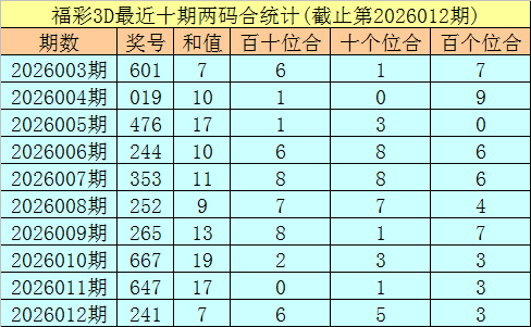 开奖回顾:第2026012期福彩3D奖号为241。奖号形态为组六,大小比为0:3,和值为7,奇偶比为1:2,012路比为0:2:1,跨度为3。