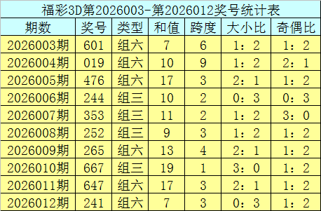上期回顾:福利彩票3D第2026012期奖号为241。