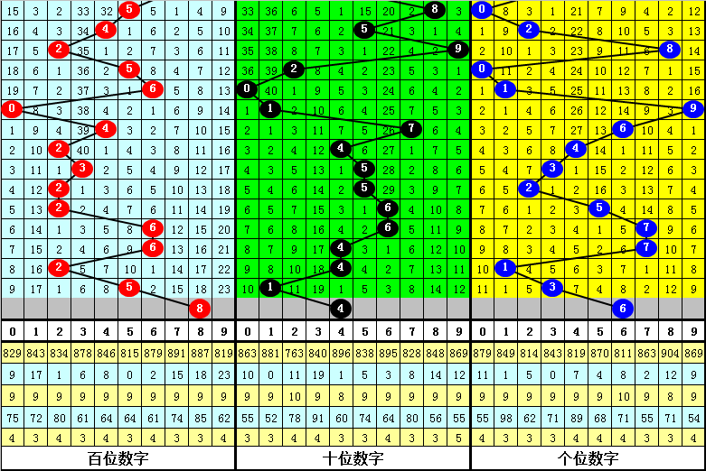 百位分析:上期出现号码5为:大号、质数,在连续9期开奖中,百位分别为:小 号、合数:4;小 号、质数:2;小 号、质数:3;小 号、质数:2;小 号、质数:2;大号、合数:6;大号、合数:6;小 号、质数:2;大号、质数:5,其中大号频次较低,合数出号较少,百位本期预计开出大号、合数。