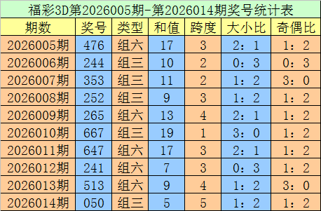 上期回顾:福利彩票3D第2026014期开出奖号050。奖号类型:组三,大小形态:小大小,奇偶形态:偶奇偶。