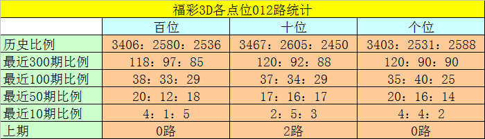 十位分析:该位最近10期开出了2个0路号码、5个1路号码、3个2路号码,1路号码热出,0路号码走冷。本期排除1路号码,参考号码:0。