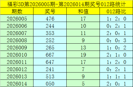 福彩3D第2026015期012路分析