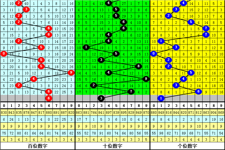 另外,两码合出现期数从高到低分别为:4、5开出8期,2、3、8开出7期,0、1、7开出6期,6开出5期,9开出4期,本期两码合参考:4、7、9。