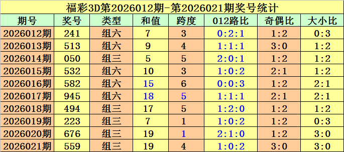 开奖回顾:第2026021期福彩3D奖号为559。