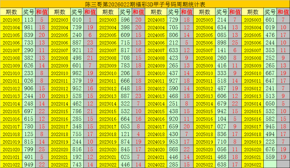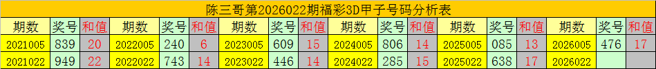 陈三哥3D第2026022期甲子号分析: