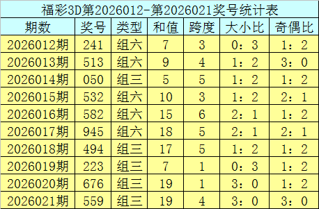 上期回顾:福利彩票3D第2026021期奖号为559。