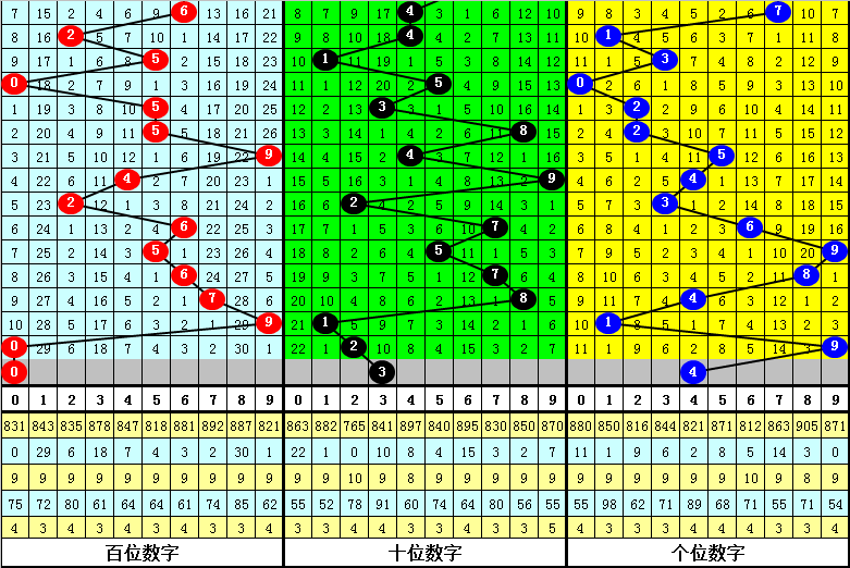 首位跨度分析:首位号码最近3期奖号为7-9-0,连续两期跨度为2、9,历史上首位号码连续两期分别开出跨度2、9的现象共出现20次,其前两次开出奖号分别为: