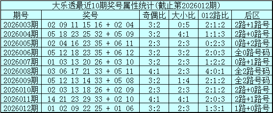 大乐透第2026012期开奖号码:01 02 09 22 25 + 01 06。前区奖号大小比为2:3,奇偶比为3:2,012路比为1:3:1,后区为1路+0路号。