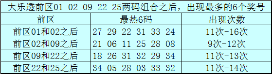 前区两码01和02和之后表现最热的6个号码为:27、29、22、31、33、24;
