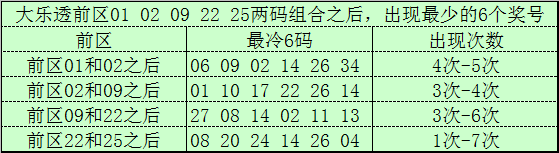 前区冷码统计:大乐透第26012期前区奖号为:01、02、09、22、25,截止第26012期历史上大乐透已经开出了2830期奖号了,在连续两码奖号中: