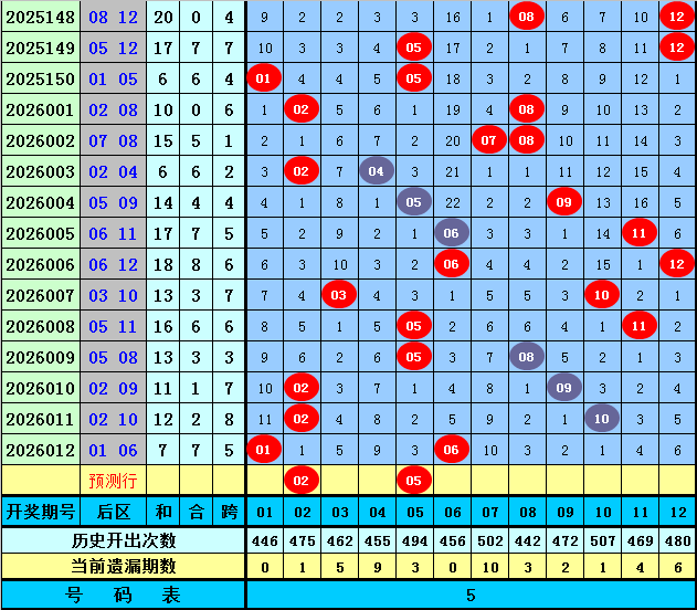 后区杀号5码参考:03、04、07、08、12