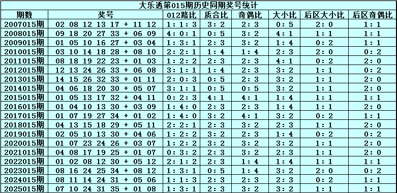 体彩大乐透第2026015期历史同期开奖号码分析: