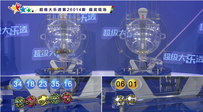 体彩大乐透第26014期奖号为:16 18 23 34 35+01 06,前区奇偶比为2:3,012路比为1:2:2,大小比为4:1,后区为全小奖号。