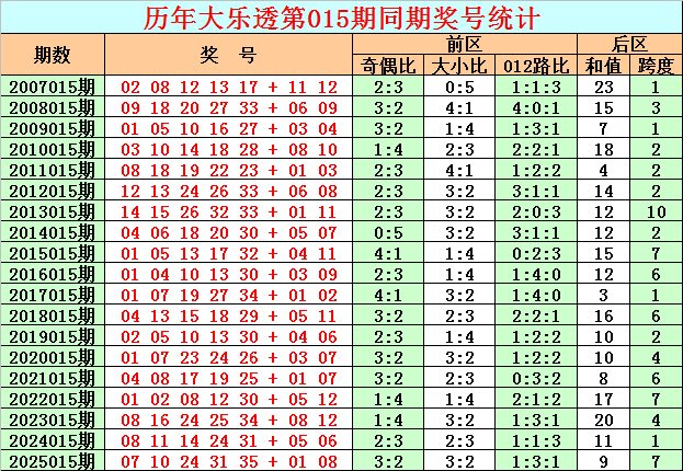 在历史同期奖号中,后区奖号跨度尾数大小比为8:11(定义:跨度1、2、3、10、11为小尾跨度,跨度4、5、6、7、8、9为大尾跨度),其中小尾跨度出现次数较高,本期重点关注小尾跨度再次出现,参考跨度1。
