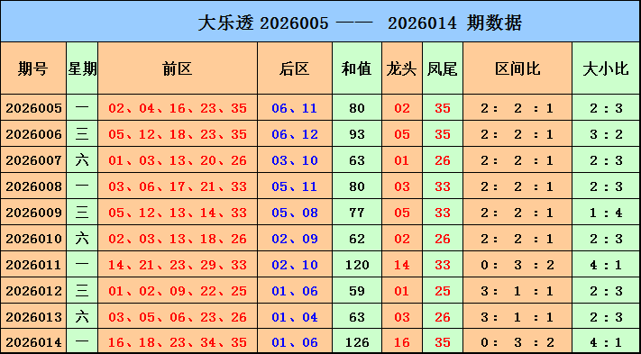 大乐透前区分析: