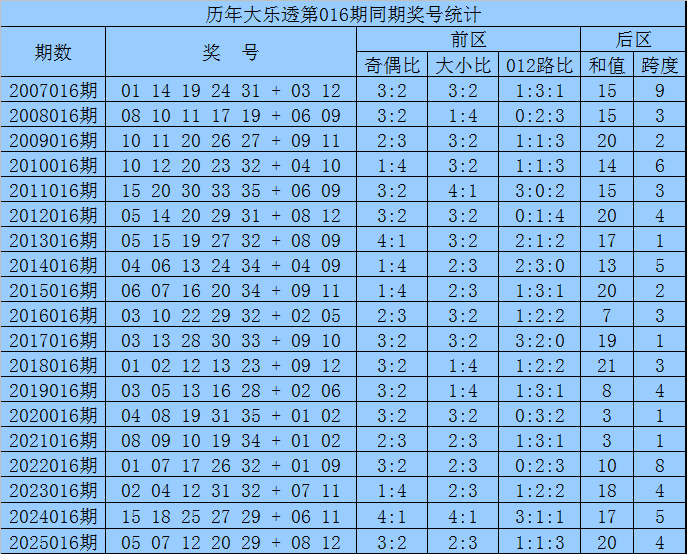 袁军师体彩大乐透第2026016期历史同期奖号分析: