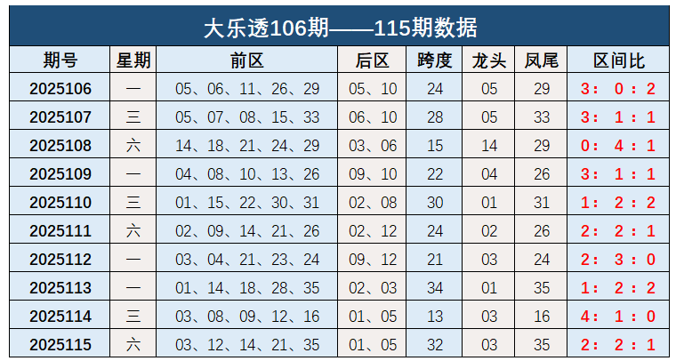 大乐透第2025115期出奖号统计:前区03、12、14、21、35,后区01、05。前区跨度32,龙头03,凤尾35,区间比比2:2:1。