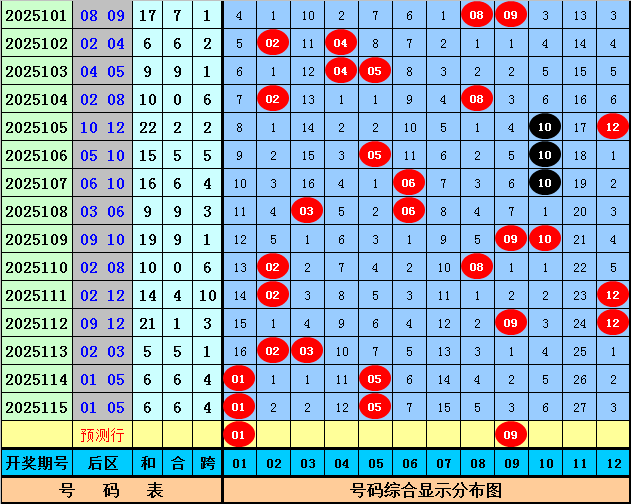 前区第二位:上期该位开出号码12,为重号,前7期该位分别遗漏:1期、2期、6期、2期、1期、4期、0期,其中冷温热号码个数比为0:2:5,热码开出频次较高,本期预计继续开出热码,参考热码09。