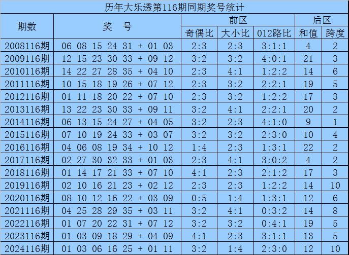 袁军师体彩大乐透第2025116期历史同期奖号分析: