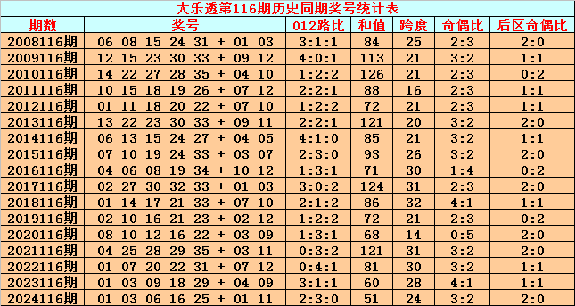 综上所述,大乐透第2025116期前区012路比参考1:1:3。