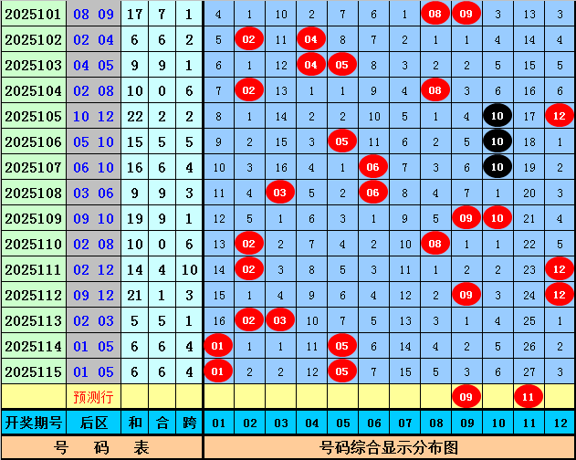 后区分析:上期开出后区奖号01+05,为全奇组合,后区最近10期全奇、全偶和一奇一偶组合分别开出2次、3次和5次,本期后区防全奇组合再出,参考号码09、11。
