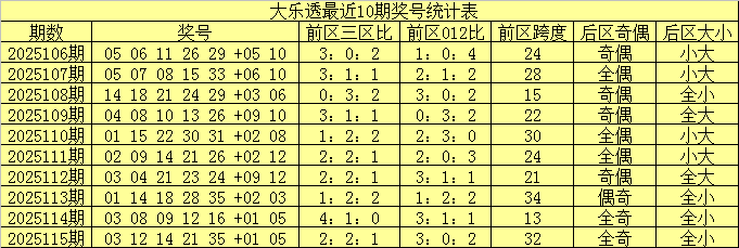 大乐透第2025115期奖号开出:03 12 14 21 35 +01 05。其中前区三区比为2:2:1,012路比为3:0:2,后区开出全小、全奇奖号。