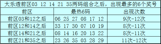 前区两码03和12和之后表现最热的6个号码为:06、25、27、08、17、12;