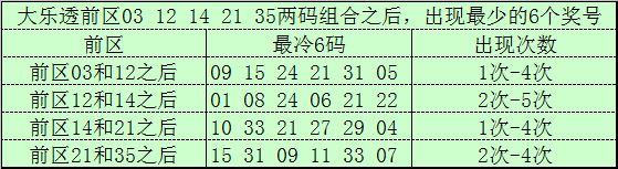 前区冷码统计:大乐透第25115期前区奖号为:03、12、14、21、35,截止第25115期历史上大乐透已经开出了2783期奖号了,在连续两码奖号中: