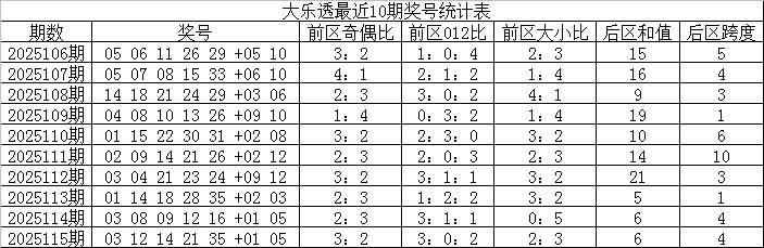 012路分析:上期前区奖号012路比为3:0:2,最近两周0路前区奖号走势活跃。