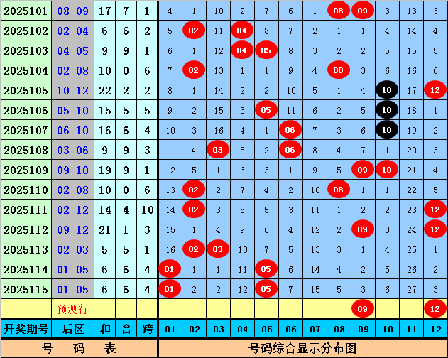 后区分析:上期后区开出奖号01、05,为全小、全奇组合。