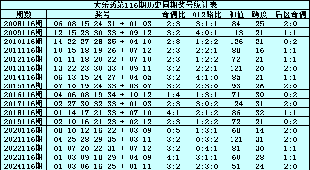 水镜体彩大乐透第2025116期历史同期奖号分析: