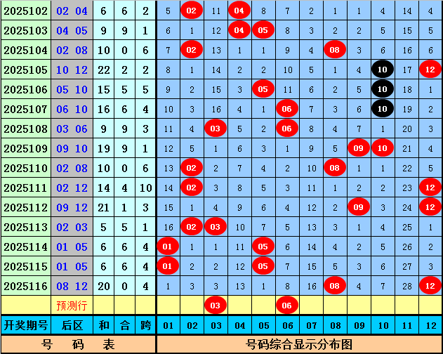 体彩大乐透第25116期奖号为:02 06 16 22 29+08 12,前区奖号012路比为1:2:2,奇偶比为1:4,大小比为2:3,后区1路号码轮空。