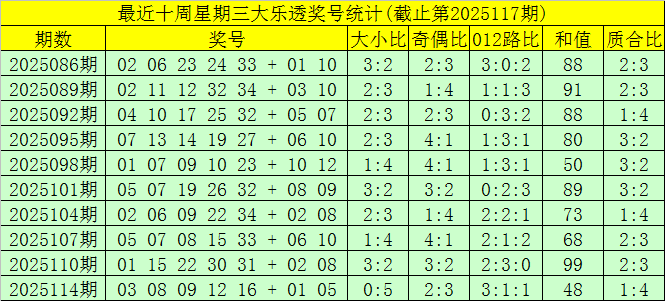 第2025117期大乐透星期三奖号分析: