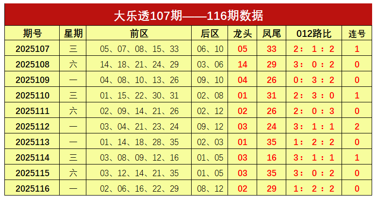 大乐透第2025116期出奖号统计:前区02、06、16、22、29,后区08、12。龙头02,凤尾29,012路比为1:2:2,未开出连号。