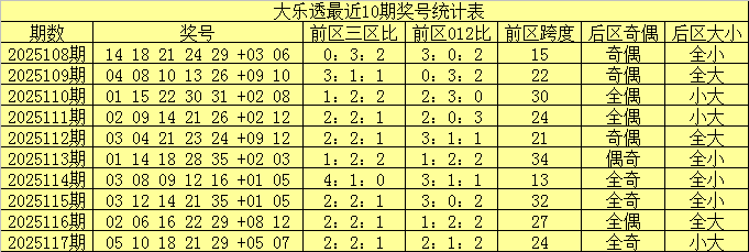 大乐透第2025117期奖号开出:05 10 18 21 29 +05 07。其中前区三区比为2:2:1,012路比为2:1:2,后区开出一大一小、全奇奖号。