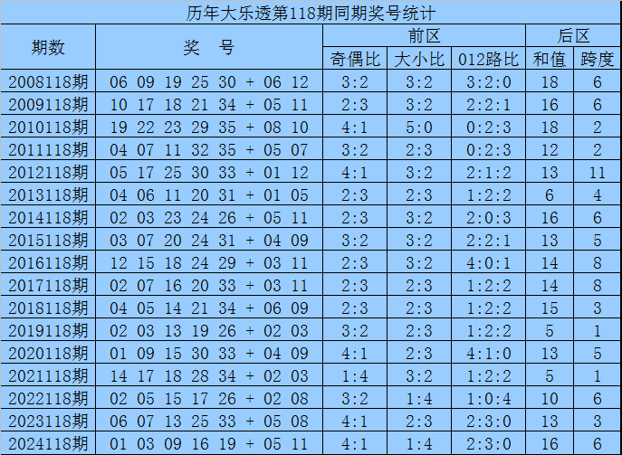 袁军师体彩大乐透第2025118期历史同期奖号分析: