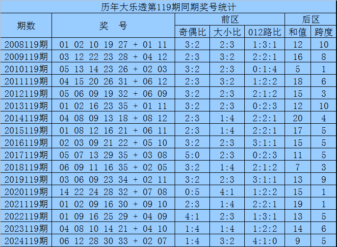 袁军师体彩大乐透第2025119期历史同期奖号分析: