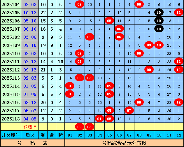 后区分析:在第119期历史同期开奖中,和值大小为9:8,跨度奇偶比为11:6,本期后区注意两码02和03。