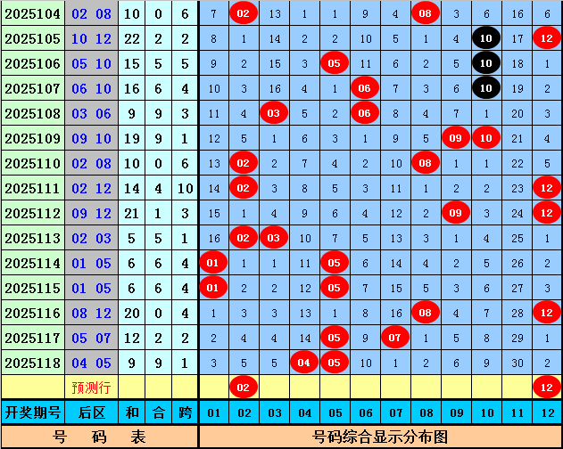 后区大范围推荐:01、02、05、10、12