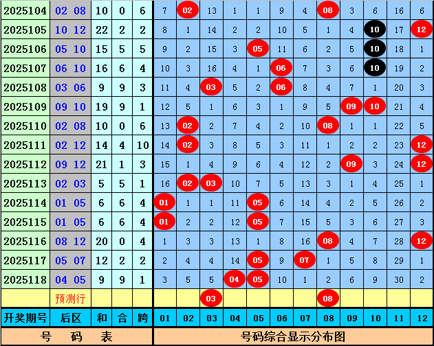 后区分析:上期后区开出奖号04、05,为全小、一奇一偶组合。