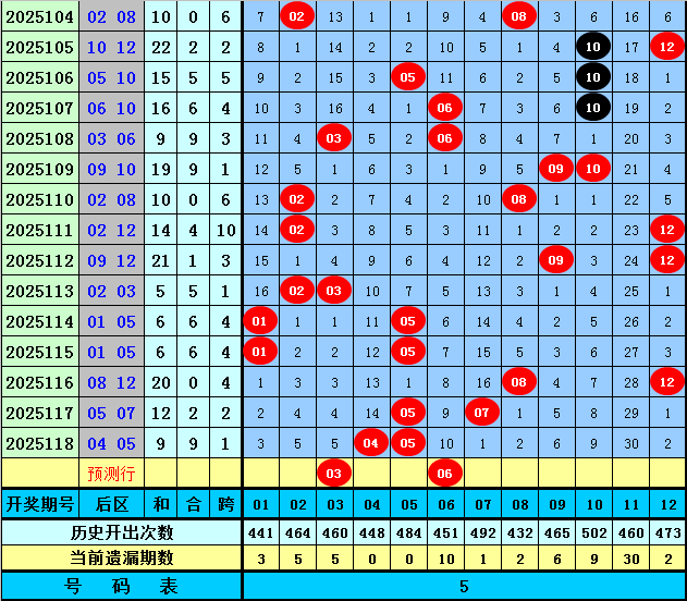 前区第一位:在历史第119期同期开奖中分布范围在01-14区段,平均值为3.9,奇偶比为10:7,目前奇数号码连续遗漏了2年,今年同期重点关注奇数号码回补,推荐号码05。