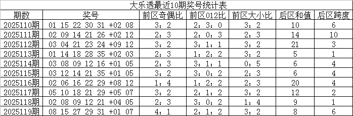 综合分析,大乐透第25120期前区012路比参考2:0:3。