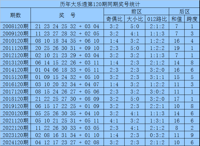 袁军师体彩大乐透第2025120期历史同期奖号分析: